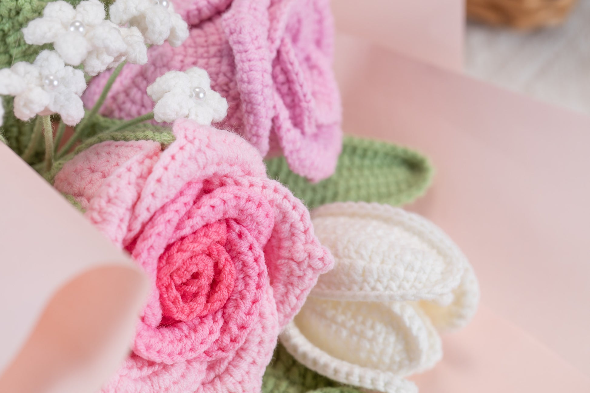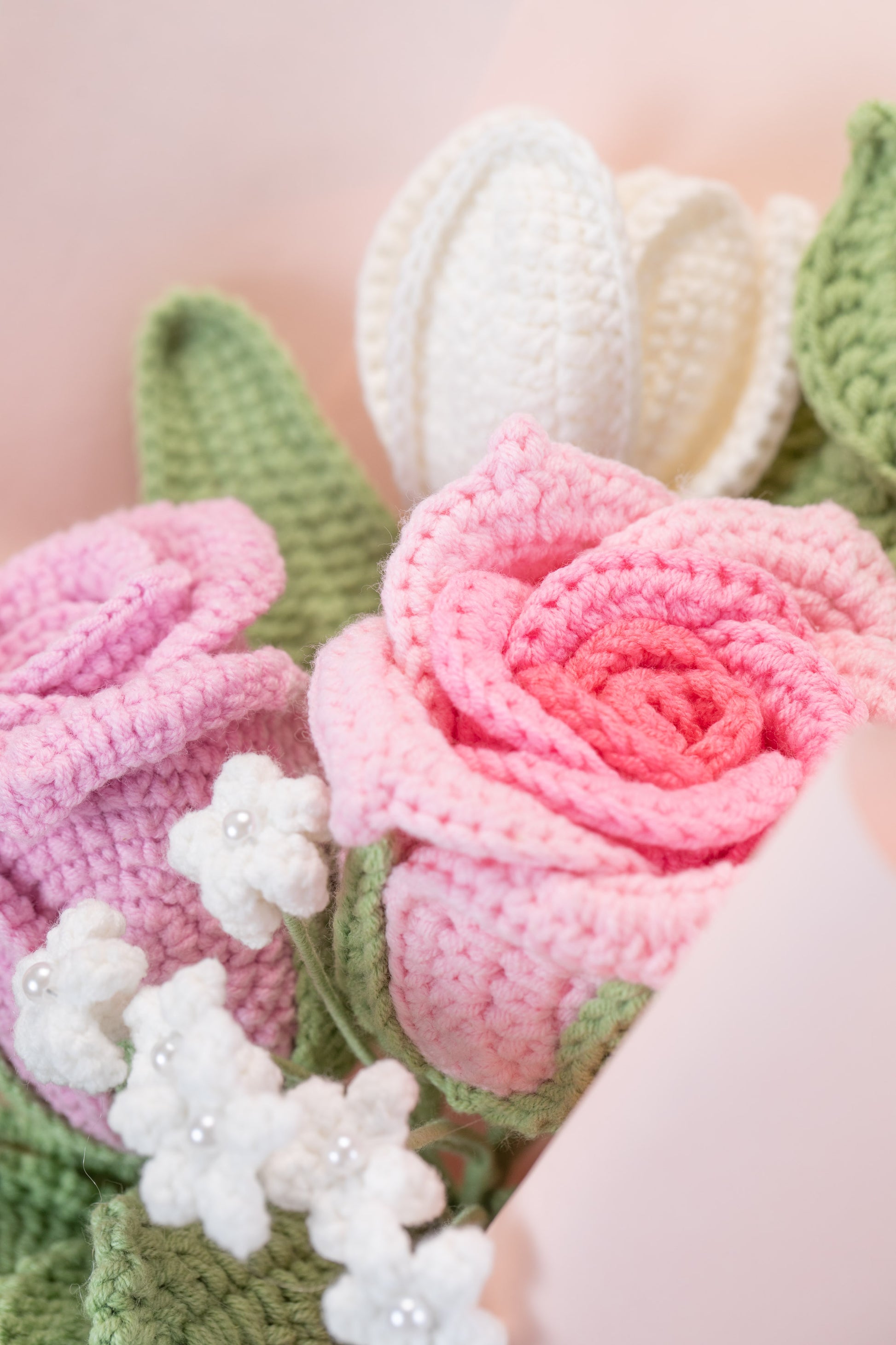 Hot Pink Rose with Tulip Bouquet: contains 1 Thai rose, 1 tulip, 1 rose, 1 baby's breath, 1 greenery