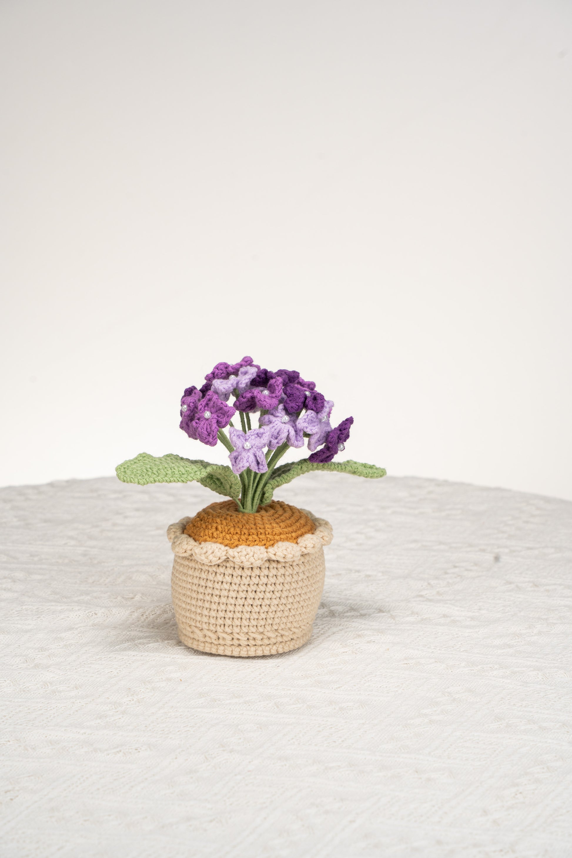 handmade crochet potted plant with purple Hydrangea
