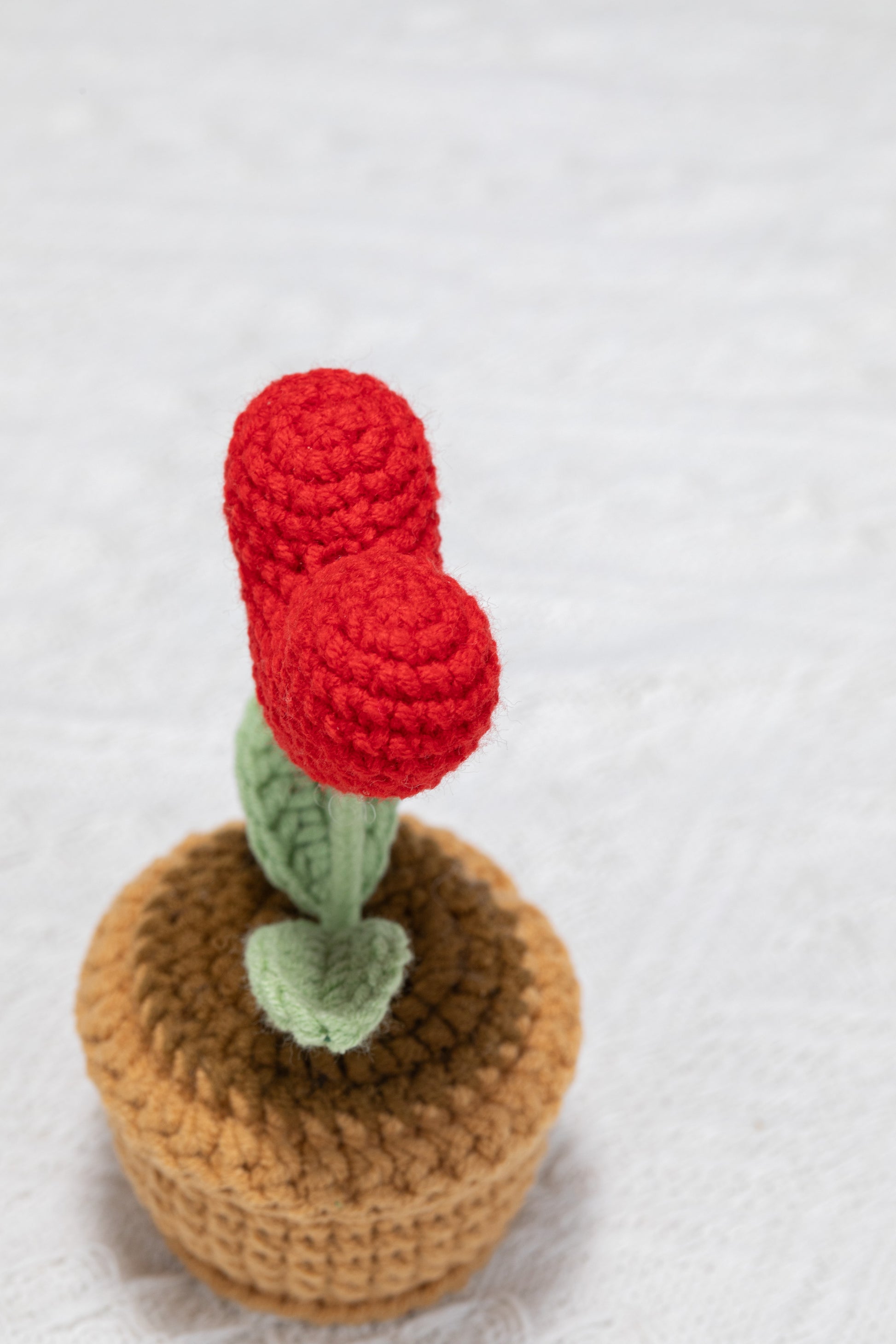 handmade crochet potted plant with red heart