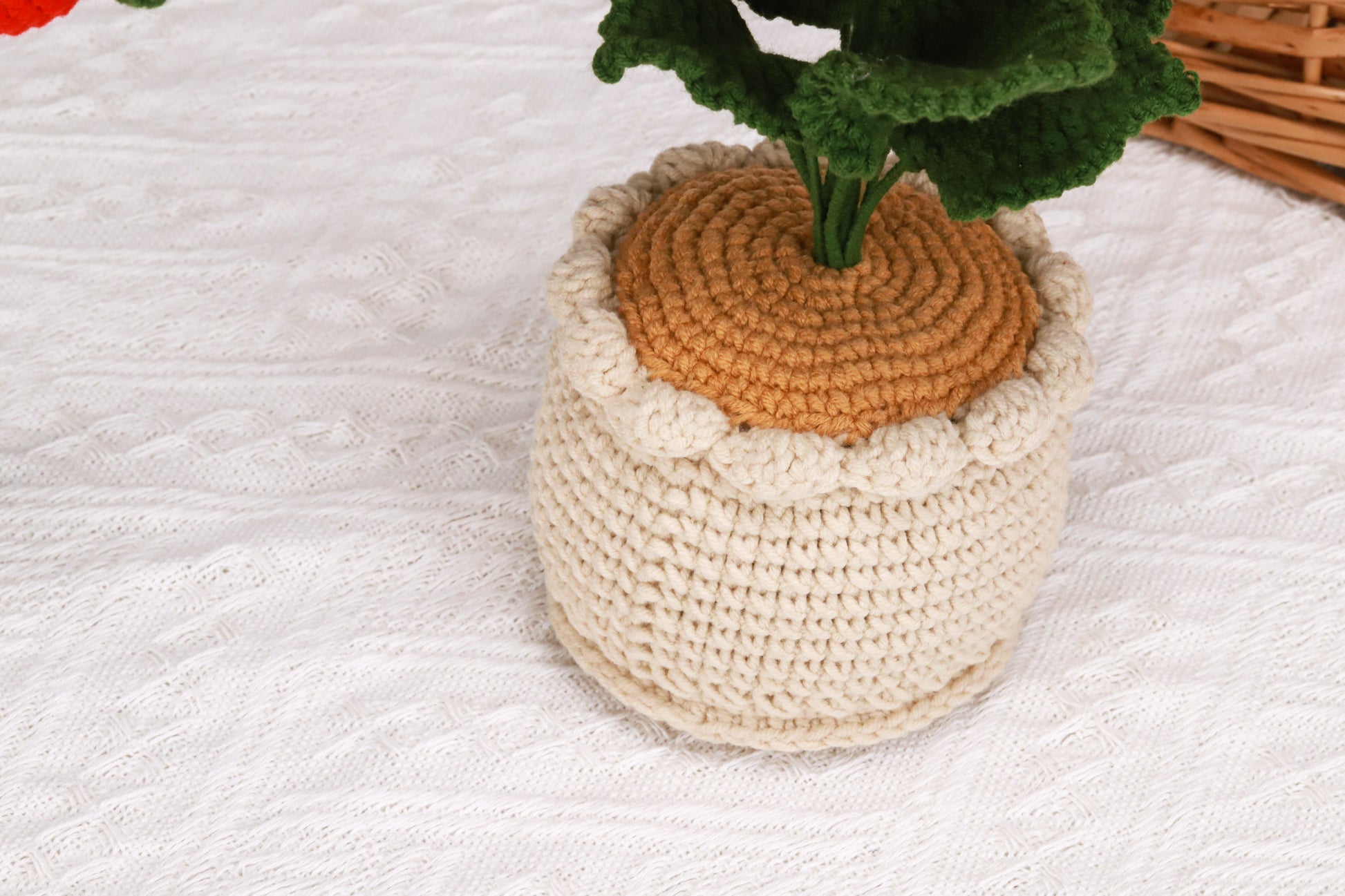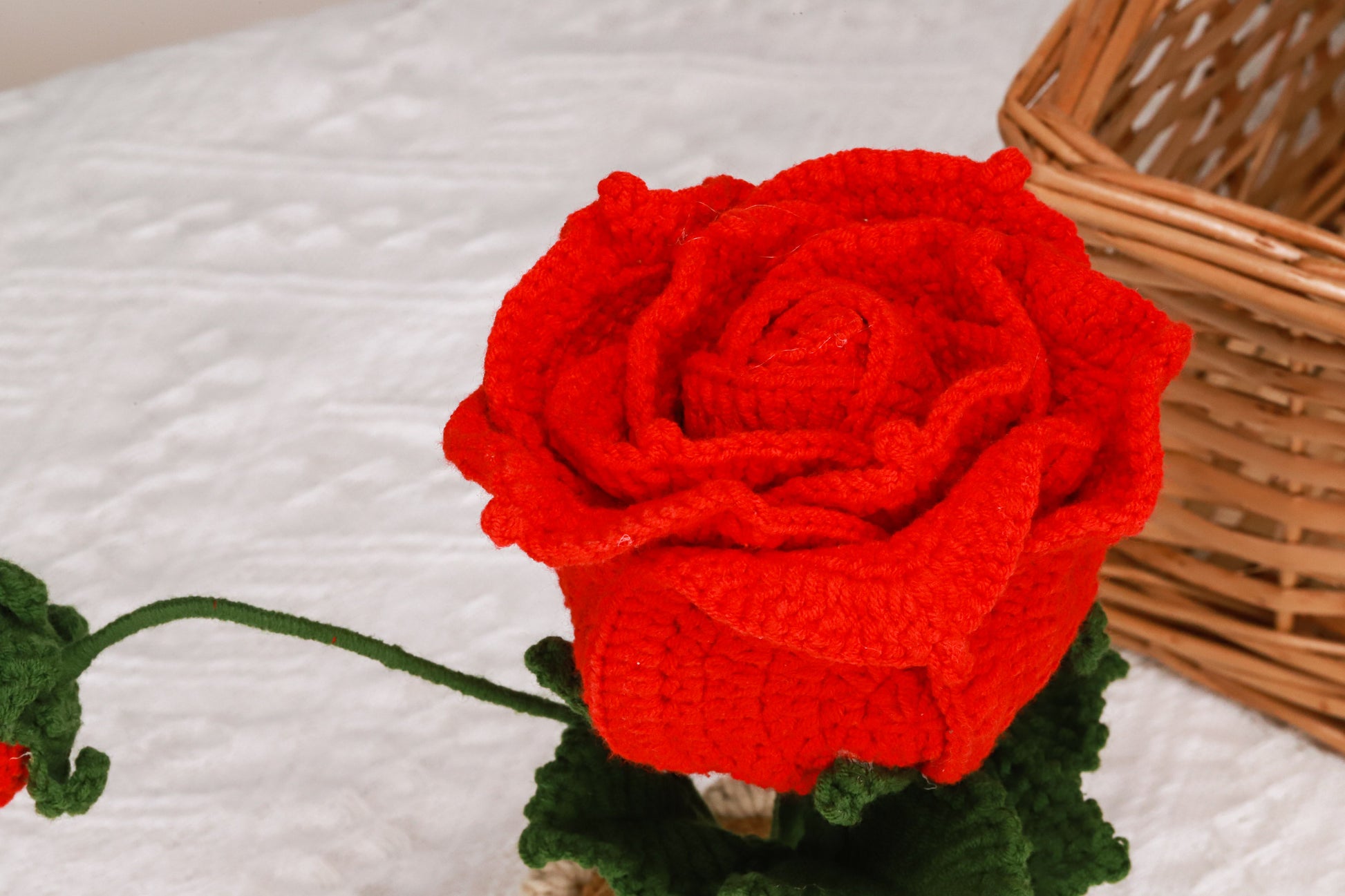 handmade crochet potted plant with red Thai rose