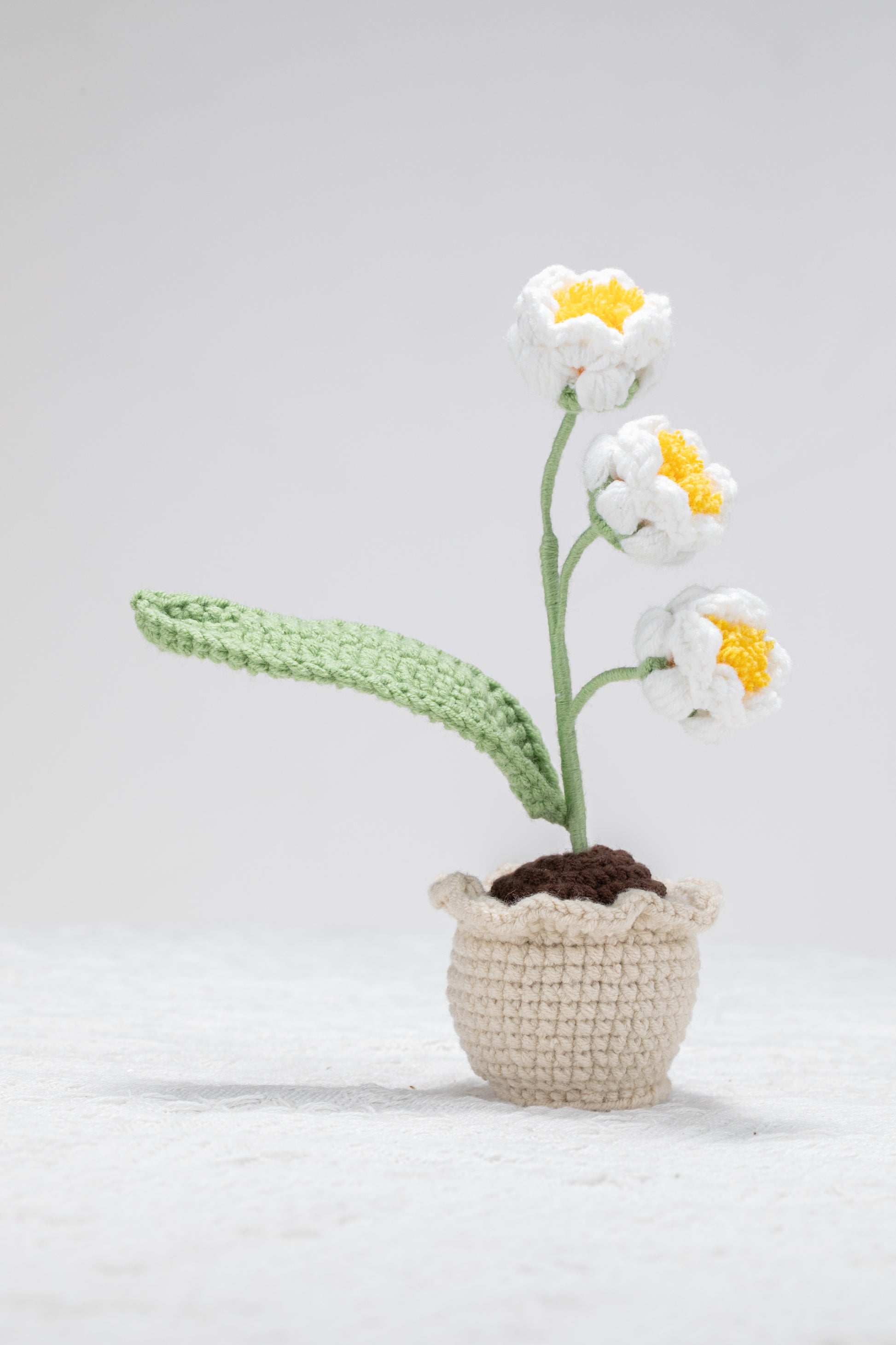 handmade crochet potted plant with 3 bell flowers.